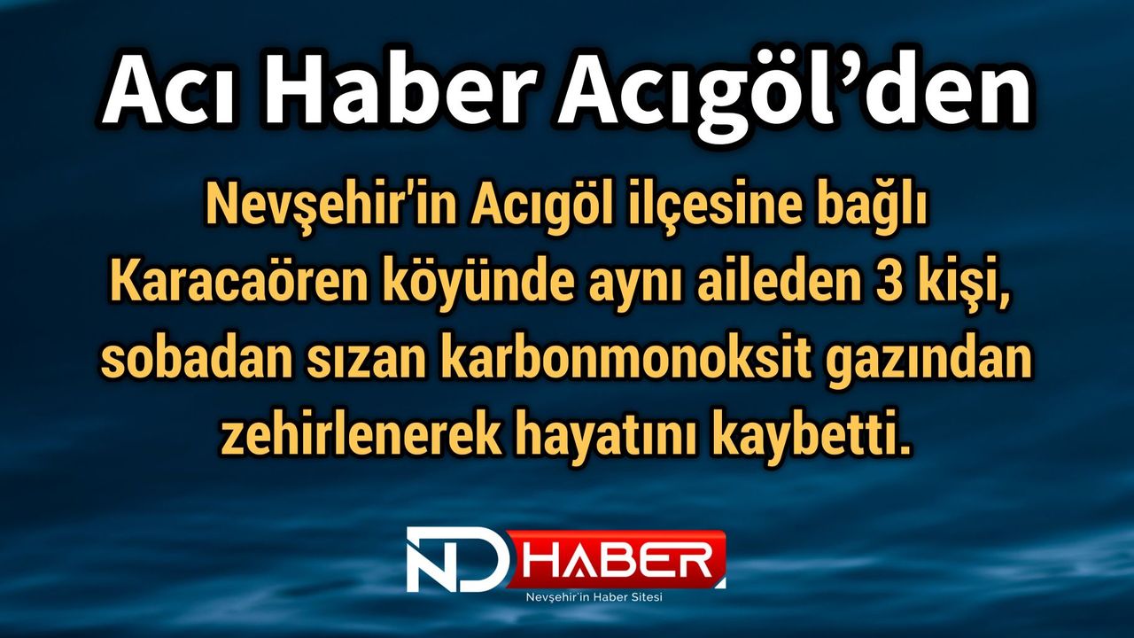 Nevşehir'in Acıgöl ilçesine bağlı Karacaören köyünde aynı aileden 3 kişi, sobadan sızan karbonmonoksit gazından zehirlenerek hayatını kaybetti.