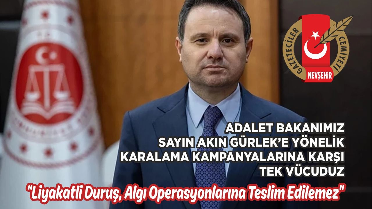 Nevşehir Gazeteciler Cemiyeti (NGC) Yönetim Kurulu olarak; son günlerde bazı medya mecralarında ve sosyal ağlarda, hemşehrimiz ve Adalet Bakanımız Sayın Akın Gürlek’i hedef alan, gerçek dışı iddialara dayalı yıpratma girişimlerini endişeyle takip ediyoruz.
