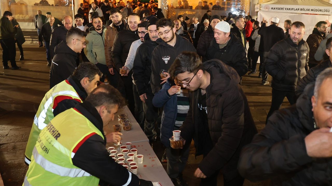 Kandil simidi ve şerbet, Nevşehir Belediyesi görevlileri tarafından camilerin önüne kurulan stantlardan vatandaşlara ikram edildi.