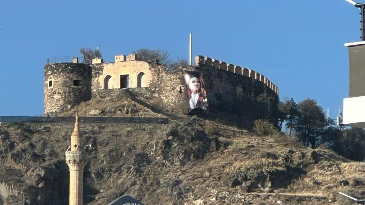 “Atatürk’ü unutturamayacaksınız!” diyerek Nevşehir’in simgesi ve en yüksek noktalarından biri olan Nevşehir Kalesi’ne gençlik kolları dev bir Atatürk posteri astı.