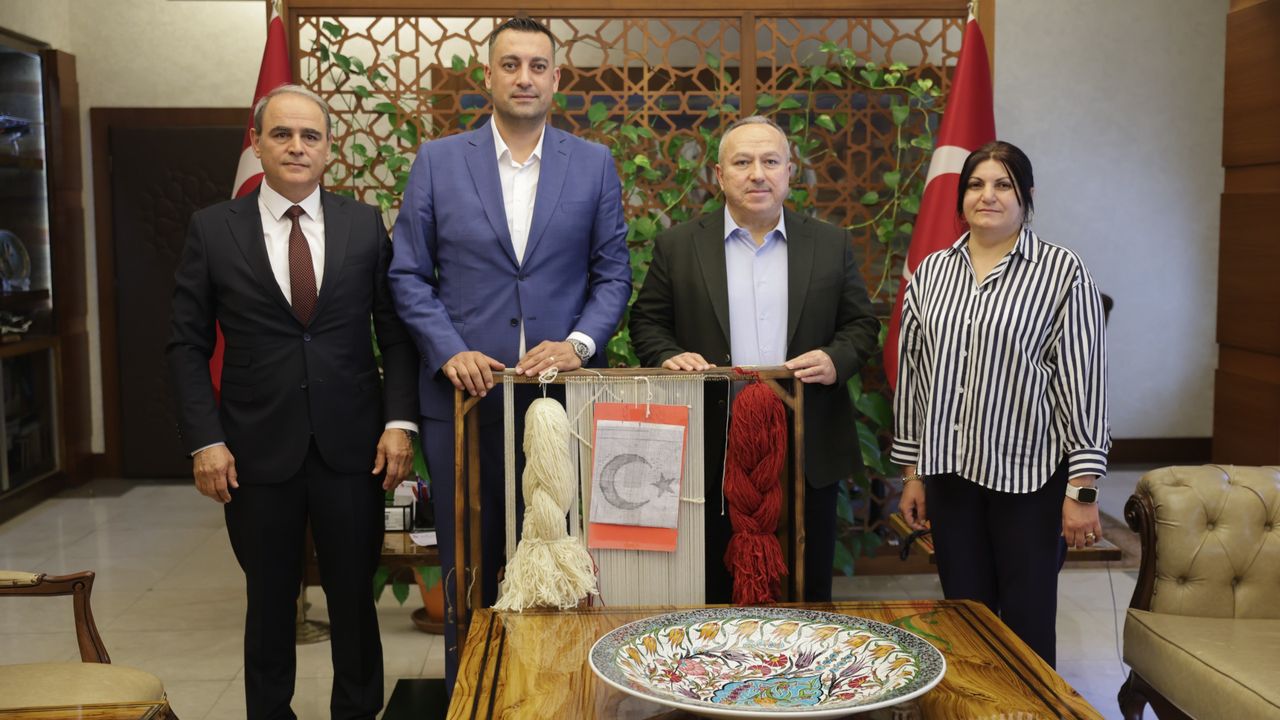 Nevşehir Belediyesi tarafından yürütülen proje çerçevesinde 29 Ekim Cumhuriyet Bayramı’na kadar tamamlanması planlanan Türk Bayrağı’na 1001 adet ilmek atılacak. Nevşehir Valisi Ali Fidan, Nevşehir Belediyesi Gençlik ve Spor Hizmetleri Müdürü Hasan Hüseyin İyilikli ile Halı Atölyesi Hocası Fatma Turgut’u makamında kabul etti.