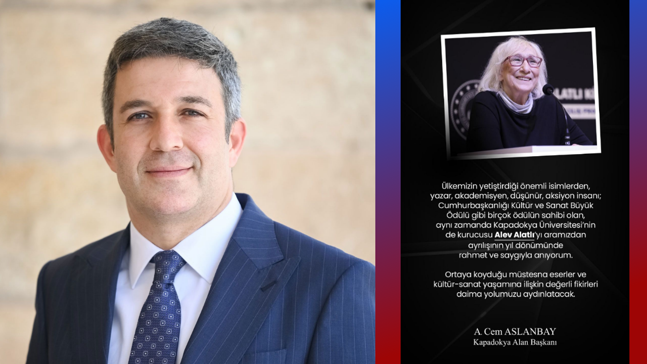 Kapadokya Alan Başkanı Aydın Cem Aslanbay, yazar, akademisyen ve düşünür Alev Alatlı’nın vefatının yıl dönümü dolayısıyla anma mesajı yayımladı.