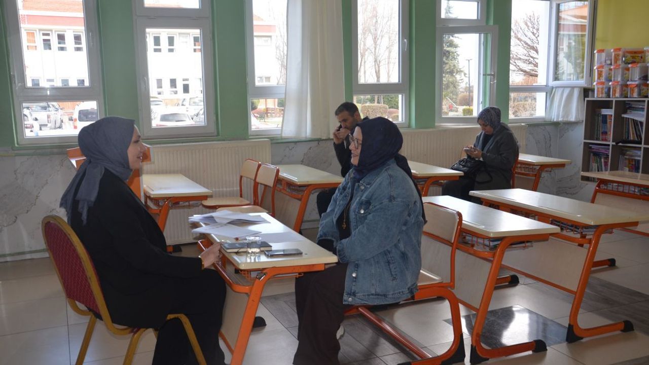 Velilerle birebir ilgilenen öğretmenler, öğrencilerin durumu ve ders programları hakkında aileleri bilgilendirdi.
