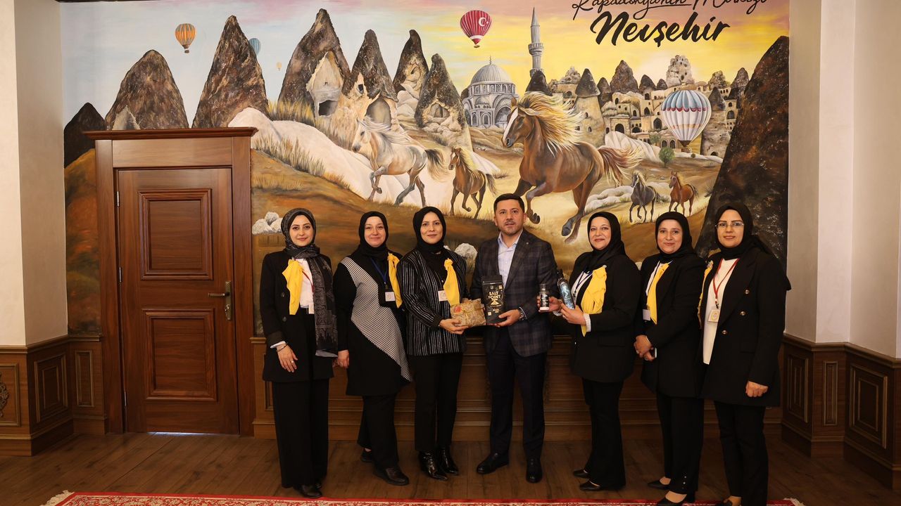 Nevşehir Belediye Başkanı Rasim Arı, Kırıkkale Kadın ve Aile Yaşam Destekleme Derneği Yönetim Kurulu Başkanı Reyhane Ercan ve yöneticilerini makamında kabul etti.