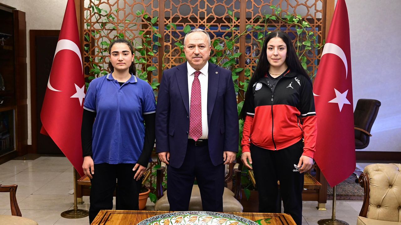 Nevşehir Valisi Ali Fidan, 7-8 Şubat 2026 tarihlerinde Adana’da düzenlenen Okul Sporları Gençler Kız A Bilek Güreşi Türkiye Şampiyonası’nda derece elde eden öğrencileri, öğretmenlerini, idarecilerini ve İl Milli Eğitim Müdürü Yusuf Yazıcı’yı Valilik Makamı’nda kabul etti.
