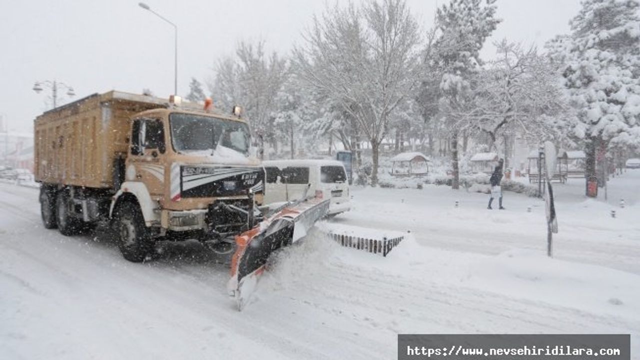 Nevşehir’de etkili olan kar yağışı dolayısıyla, ulaşımda aksamalar yaşanmaması için belediye ekipleri yoğun mesai harcıyor.