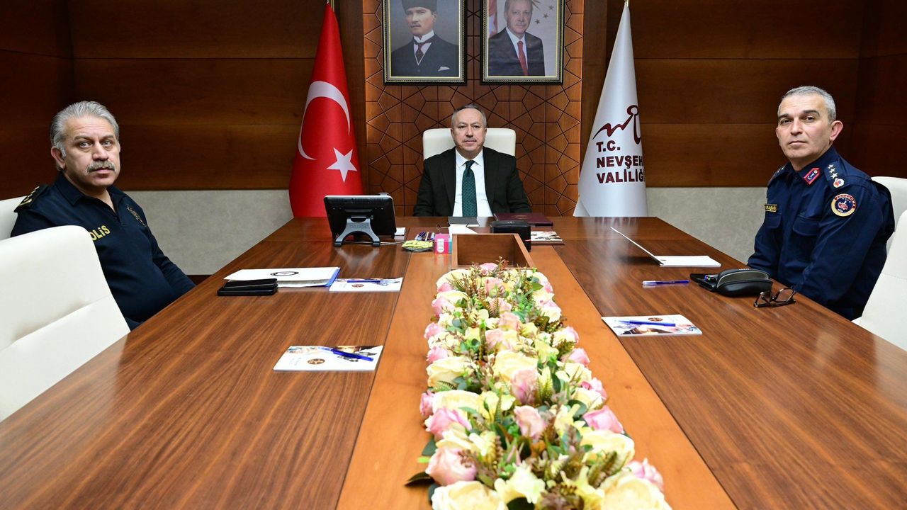 Ramazan Bayramı süresince alınacak emniyet tedbirlerinin değerlendirildiği toplantıya, Nevşehir’de Valilik Toplantı Salonu’ndan katılım sağlandı. Toplantıda İl Jandarma Komutan Vekili Jandarma Albay Ömer Faruk Karaşahin ile İl Emniyet Müdürü Serkan Karaman hazır bulundu.