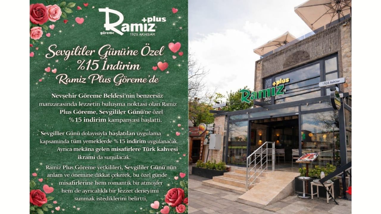 Nevşehir Göreme Beldesi’nin benzersiz manzarasında lezzetin buluşma noktası olan Ramiz Plus Göreme, Sevgililer Günü’ne özel %15 indirim kampanyası başlattı.