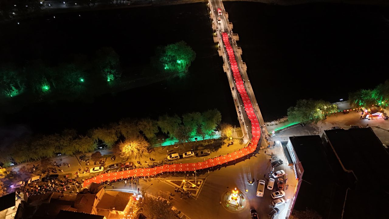 Avanos’ta Cumhuriyetimizin 102. yılı kutlamaları kapsamında coşku dolu bir Fener Alayı Yürüyüşü gerçekleştirildi. Yediden yetmişe her yaştan vatandaşın omuz omuza katıldığı yürüyüşte, ellerinde bayrak, flama, fener ve meşalelerle Avanos İlçe Milli Eğitim Müdürlüğü önünden Cumhuriyet Meydanı’na doğru ilerleyen katılımcılar, 150 metrelik dev Türk Bayrağı ile birlik ve beraberlik mesajı verdi.