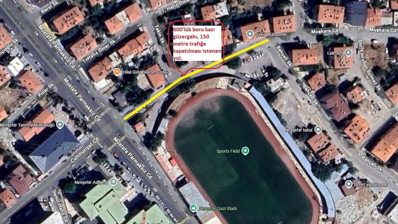 Devlet Su İşleri 124. Şube Müdürlüğü tarafından yürütülen Nevşehir İçmesuyu İsale Hattı 1. Kısım Projesi kapsamında Nevşehir merkez Bahçelievler Mahallesi’nde geçici trafik düzenlemesiyle bazı sokaklar trafiğe kapatılacak.