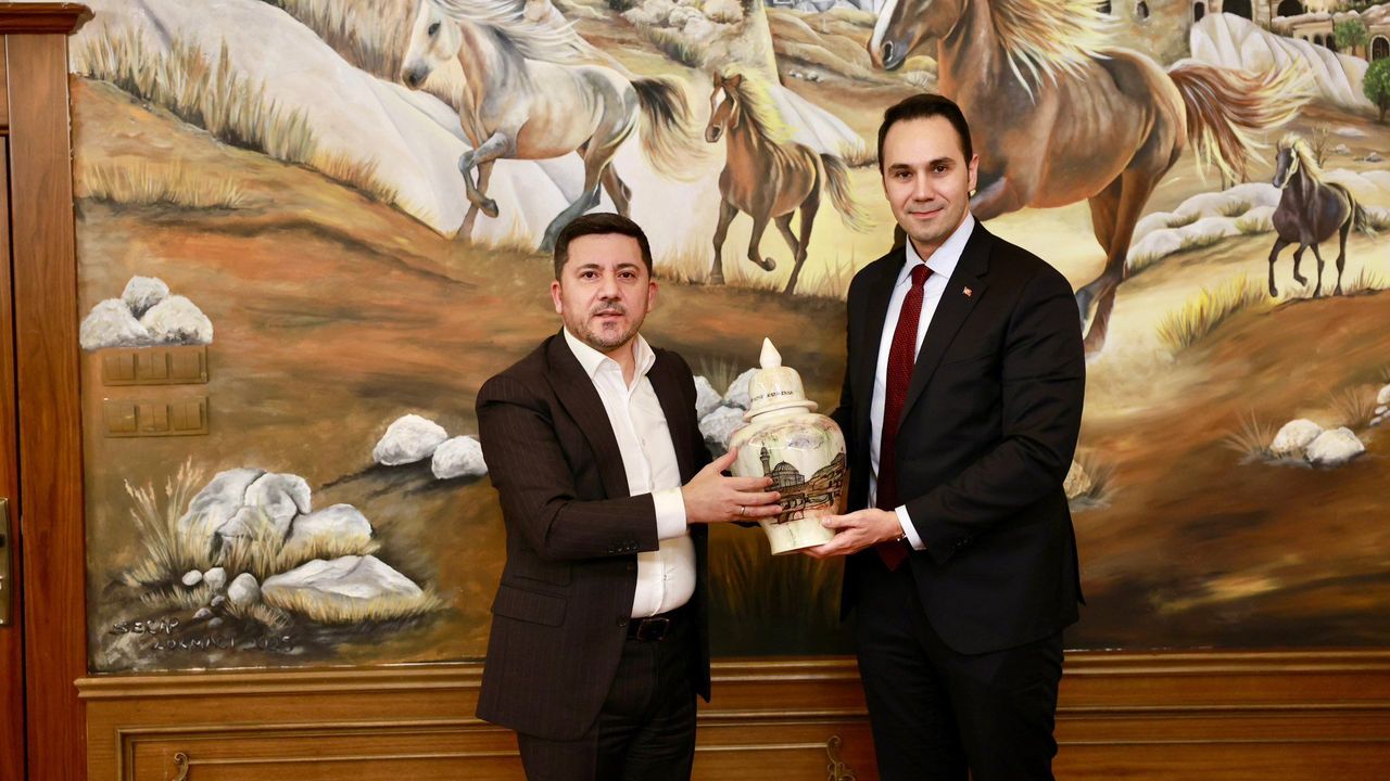 Nevşehir Belediye Başkanı Rasim Arı, Doğru Yol Partisi Genel Başkanı Cenk Küpeli’yi makamında ağırladı.
