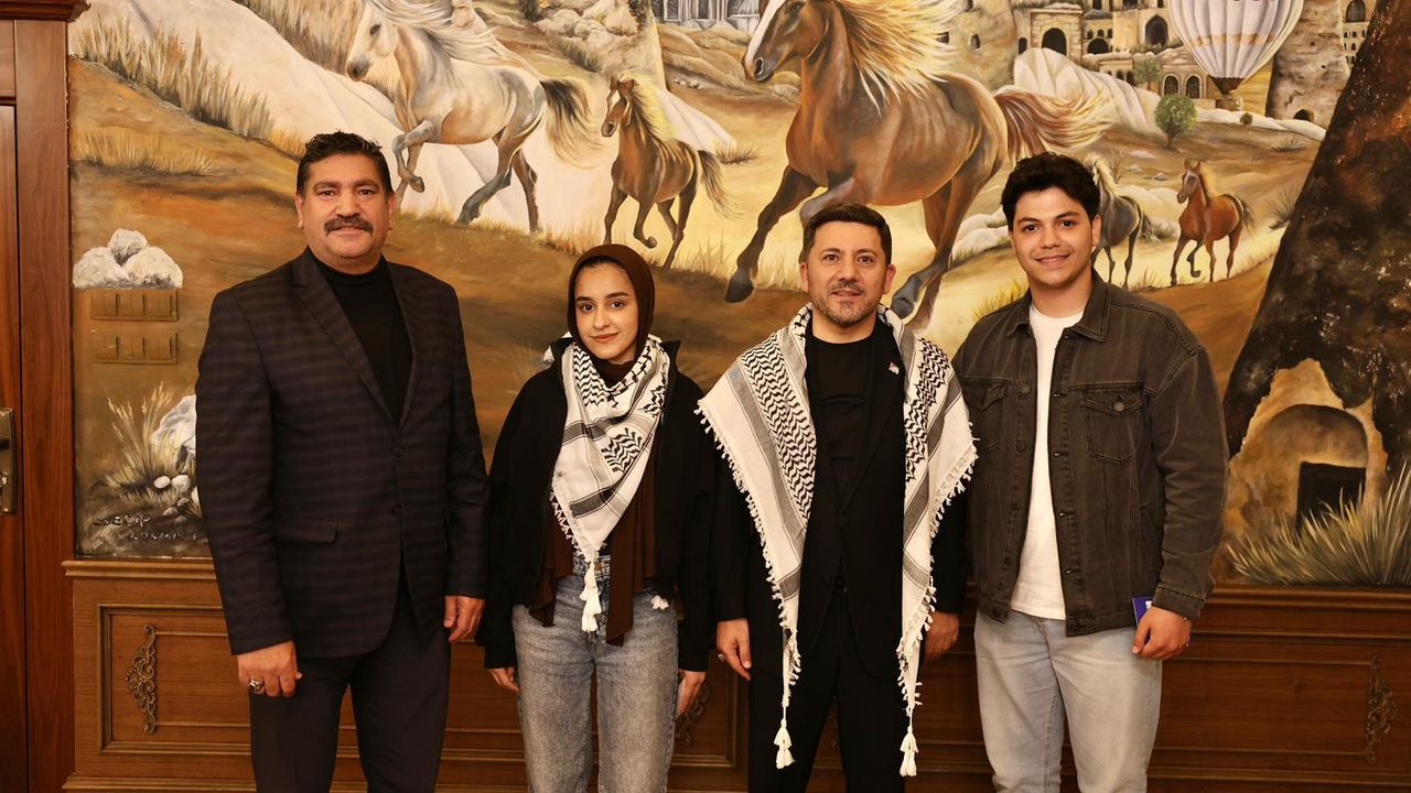 Nevşehir Hacı Bektaş Veli Üniversitesi TÖMER Türkçe Öğretim Merkezi hazırlık sınıfı öğrencileri Rahaf Abu Hassira ve Farhan Abu Hassira, Nevşehir Hacı Bektaş Veli Üniversitesi’nde görevli öğretim üyesi Doç. Dr. Özden Taşğın mihmandarlığında Belediye Başkanı Rasim Arı’yı ziyaret ederek bir süre sohbet etti. Türkiye Belediyeler Birliği (TBB) Encümen Üyesi ve Avrupa Konseyi Yerel ve Bölgesel Yönetimler Kongresi (YBYK) Yerel Meclis Asil Üyesi olan Belediye Başkanı Rasim Arı, farkındalık oluşturmaya ve Dünya gündemini ilgilendiren konularla ilgili otorite olmaya devam ederken Nevşehir’de yaşayan 2 Filistinli öğrenci Başkan Arı’nın Fransa’da yaptığı konuşmanın duygularına tercüman olduğunu ve milyonlarca Filistinli’nin sesi olduklarını ifade ederek Başkan Arı’ya Filistin bayraklı rozet ve keffiyeh Filistin atkısı armağan etti.
