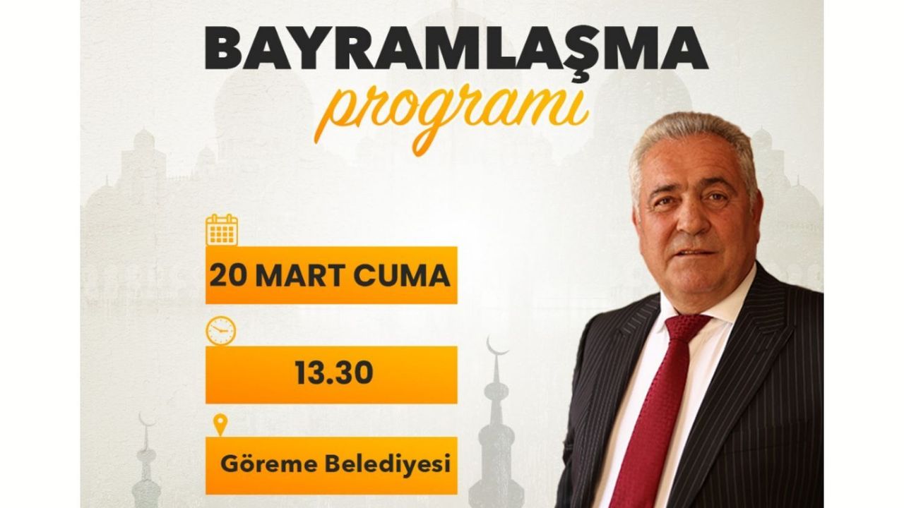 Göreme Belediyesi Bayramlaşma programı, 20 Mart Cuma günü saat 13.30’da, bayramın birinci günü Cuma namazı çıkışında Göreme Belediyesi’nde gerçekleştirilecek.