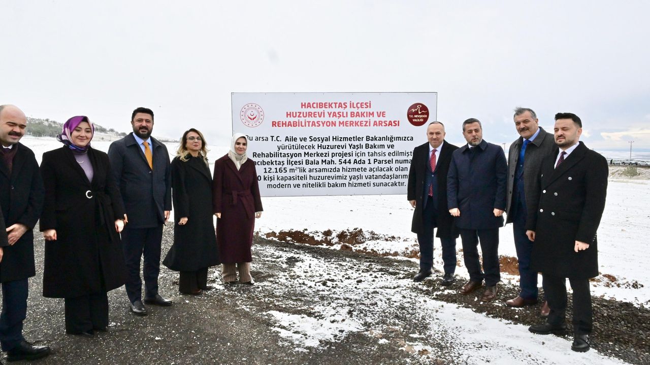 Aile ve Sosyal Hizmetler Bakanı Mahinur Özdemir Göktaş’ın teşrifleriyle; Nevşehir Valisi Ali Fidan, Aile ve Sosyal Hizmetler Bakan Yardımcısı Adil Çalışkan, AK Parti Nevşehir Milletvekilleri Emre Çalışkan ve Süleyman Özgün, MHP Nevşehir Milletvekili Filiz Kılıç ile il protokolü, Hacıbektaş ilçesinde yapılması planlanan Hacıbektaş Huzurevi Yaşlı Bakım ve Rehabilitasyon Merkezi arazisinde incelemelerde bulundu.
