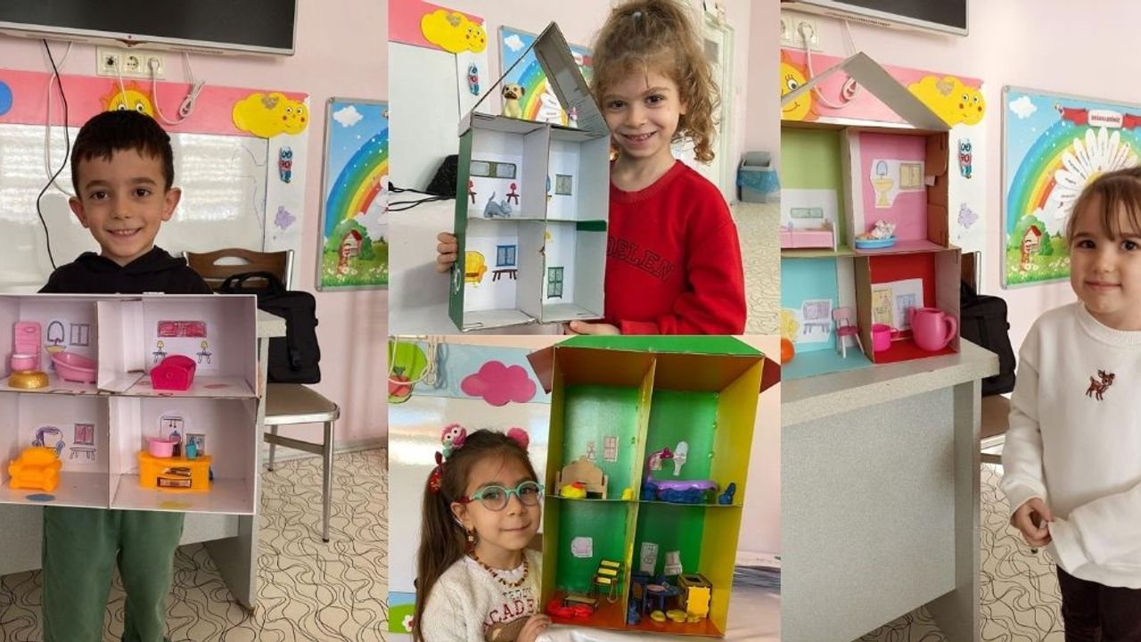 Kardelen Eğitim Kurumları Anaokulu öğrencileri, İngilizce dersi kapsamında kartondan hayallerindeki evi yaptı.