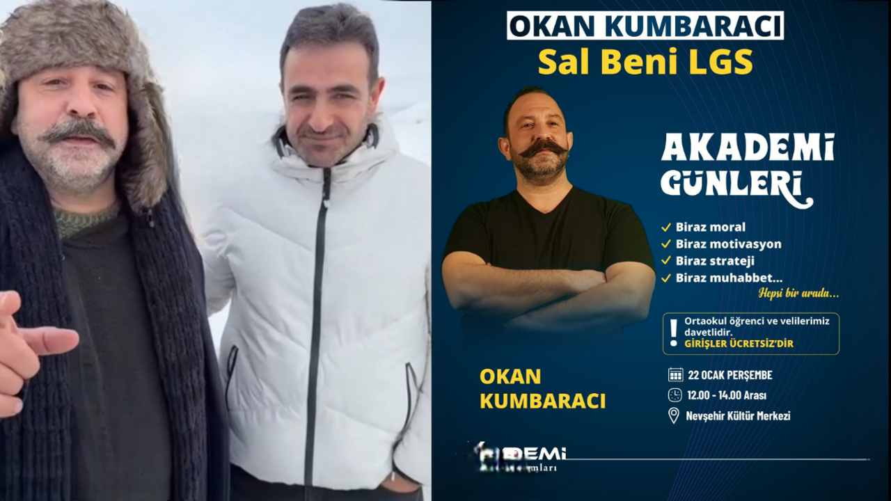 LGS öğrencilerine yönelik gerçekleştirdiği motivasyon seminerleriyle Türkiye genelinde tanınan; eğitimci, yazar, televizyon ve radyo programcısı Okan Kumbaracı, Nevşehir’e geliyor.