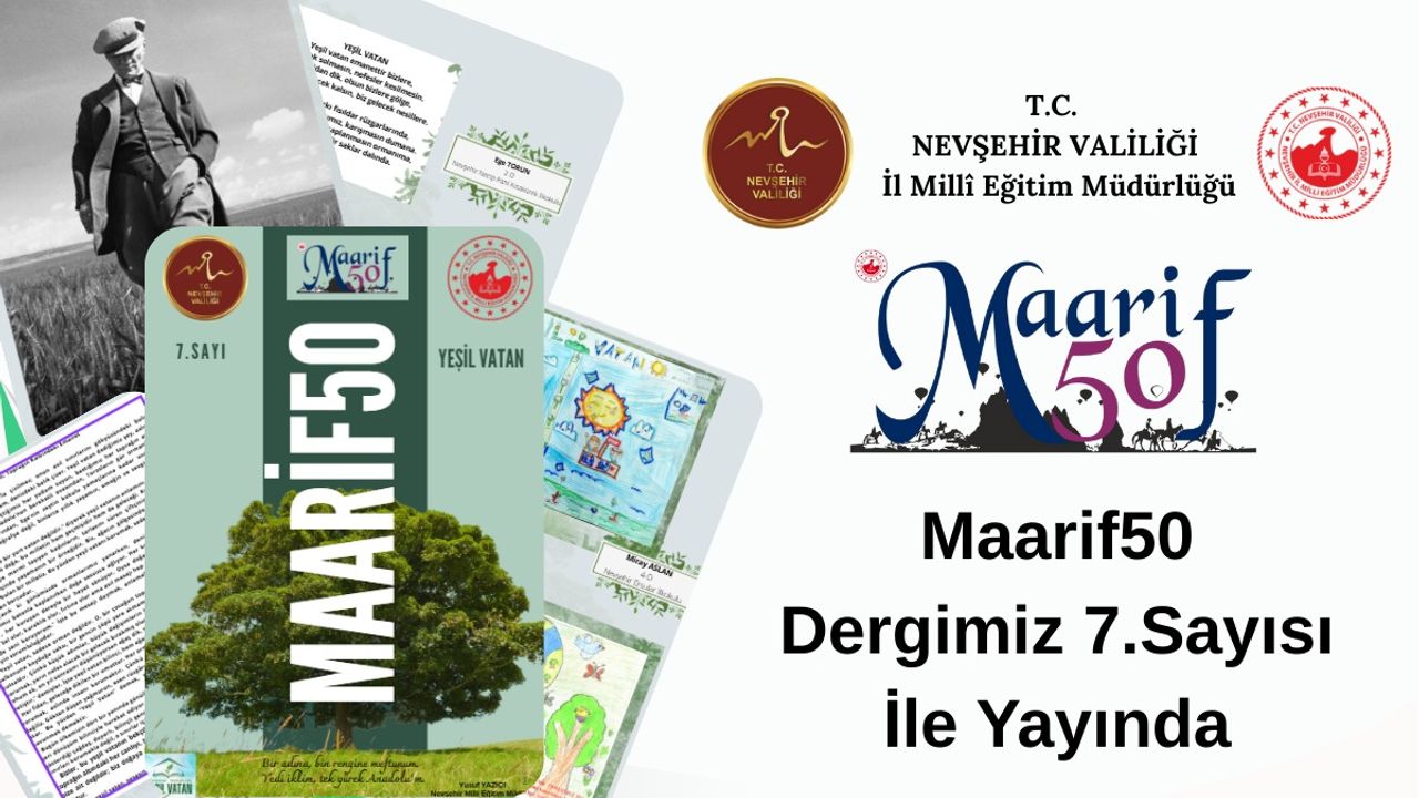 Türkiye Yüzyılı Maarif Modeli kapsamında hazırlanan Maarif50 dergisi, Nevşehir'de yürütülen eğitim faaliyetlerini yansıtan; okullarda öğrenci ve öğretmenlerin belirlenen temalar doğrultusunda hazırladıkları şiir, resim, karikatür, kompozisyon, anı ve hikâye gibi özgün çalışmalara yer veren eğitim ve kültür içerikli bir dergidir.
