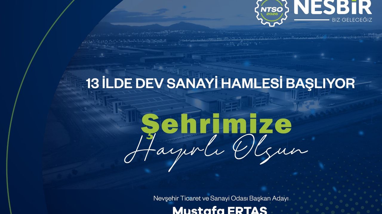 Nevşehir Ticaret ve Sanayi Odası (NTSO) Başkan Adayı Mustafa Ertaş, Sanayi ve Teknoloji Bakanı Mehmet Fatih Kacır tarafından açıklanan ve Resmî Gazete’de ilan edilen yeni sanayi yatırım alanları kararına ilişkin hayırlı olsun mesajı yayımladı.