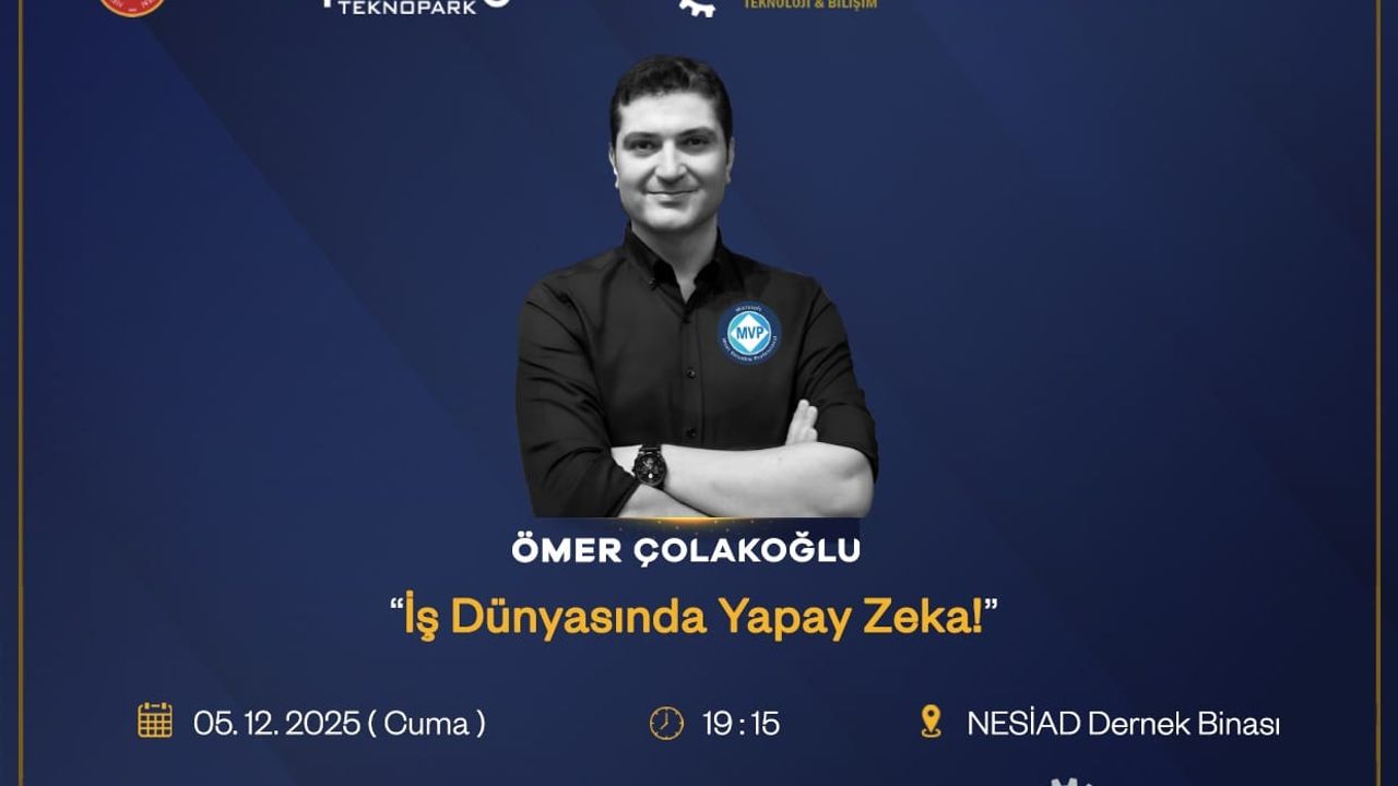 Etkinlik, 05 Aralık 2025, Cuma günü saat 19:15’te NESİAD Dernek Binası’nda gerçekleştirilecek etkinliğe tüm iş insanları davetlidir. Katılımcılar, yapay zekânın hayatımıza ve iş dünyasına olan etkilerini kapsamlı şekilde öğrenme imkânı bulacak.