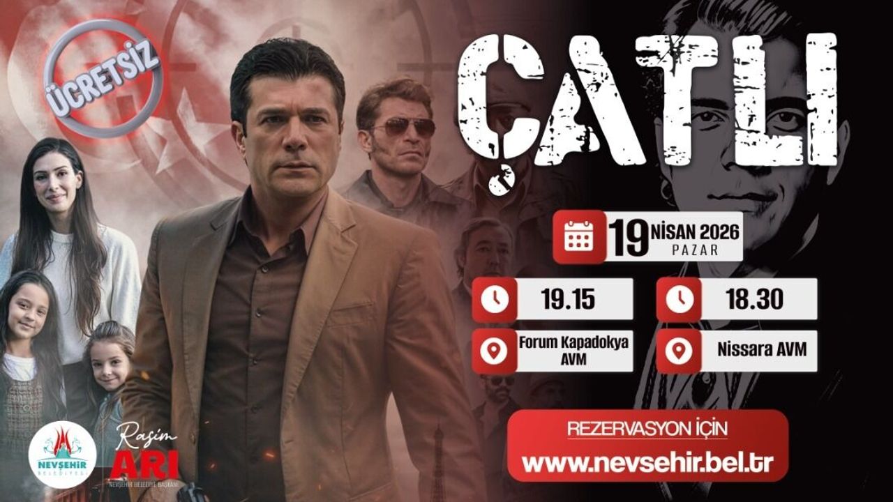 Abdullah Çatlı'nın yaşam hikayesini konu alan "Çatlı" adlı filmi Nevşehir Belediyesi Kültür, Sanat ve Sosyal İşler Müdürlüğü organizasyonuyla sosyal ve kültürel etkinlikler kapsamında 19 Nisan 2026 Pazar günü Nissara AVM sinema salonunda 18.30’da ve Forum Kapadokya AVM sinema salonunda saat 19.15’de Nevşehirli bütün sinema severler ücretsiz olarak izleyecek.