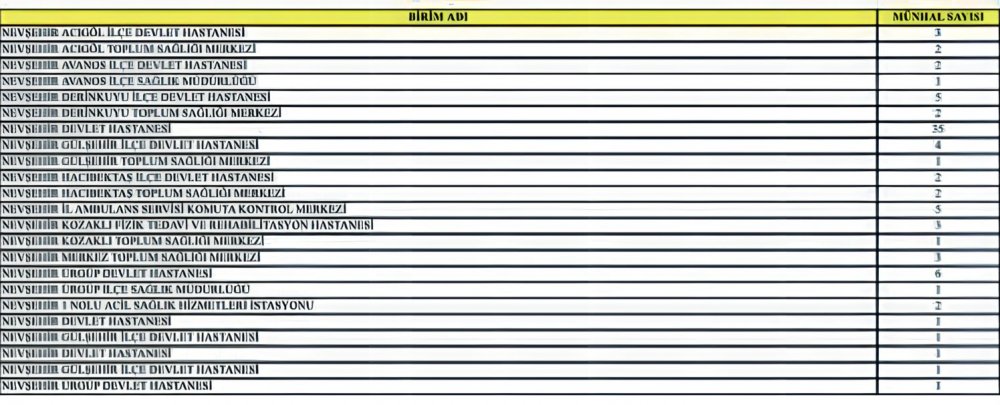 Sağlık Bakanlığı'nın 112. Dönem Hizmet Yükümlülüğü münhal kadroları kurası ile Nevşehirli vatandaşlarımızın en çok talep ettiği;