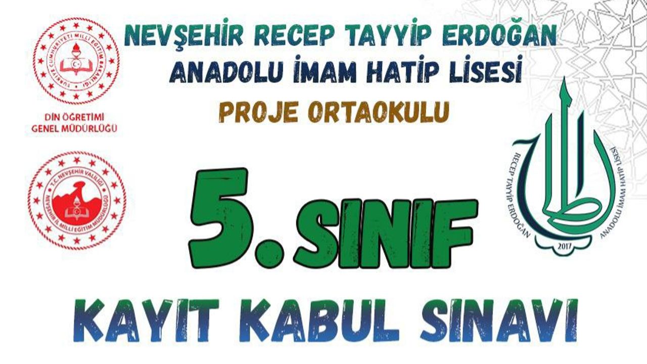Nevşehir Recep Tayyip Erdoğan Anadolu İmam Hatip Lisesi (Proje Ortaokulu), geleceğin donanımlı nesillerini yetiştirmek üzere kapılarını 5. sınıf aday öğrencilerine açıyor. Bölgede "Bir okuldan çok daha ötesi" vizyonuyla tanınan okul, akademik başarısını taçlandırmak isteyen öğrenciler için Kayıt Kabul Sınavı düzenleyecek.