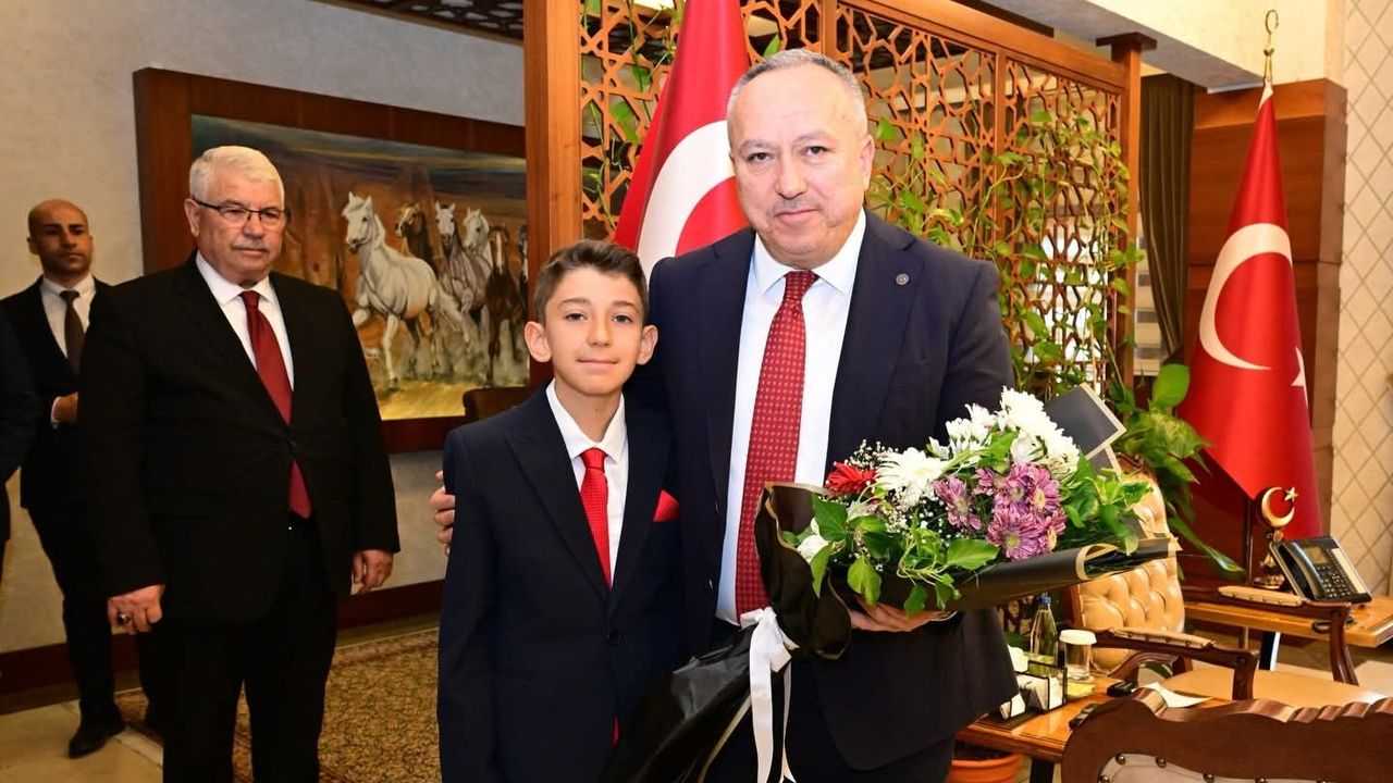 Nevşehir Valisi Ali Fidan, 23 Nisan Ulusal Egemenlik ve Çocuk Bayramı’nın 106. yıl dönümü etkinlikleri kapsamında Damat İbrahim Paşa Ortaokulu 5. sınıf öğrencisi Mehmet Alp Şahiner’i makamında ağırladı.