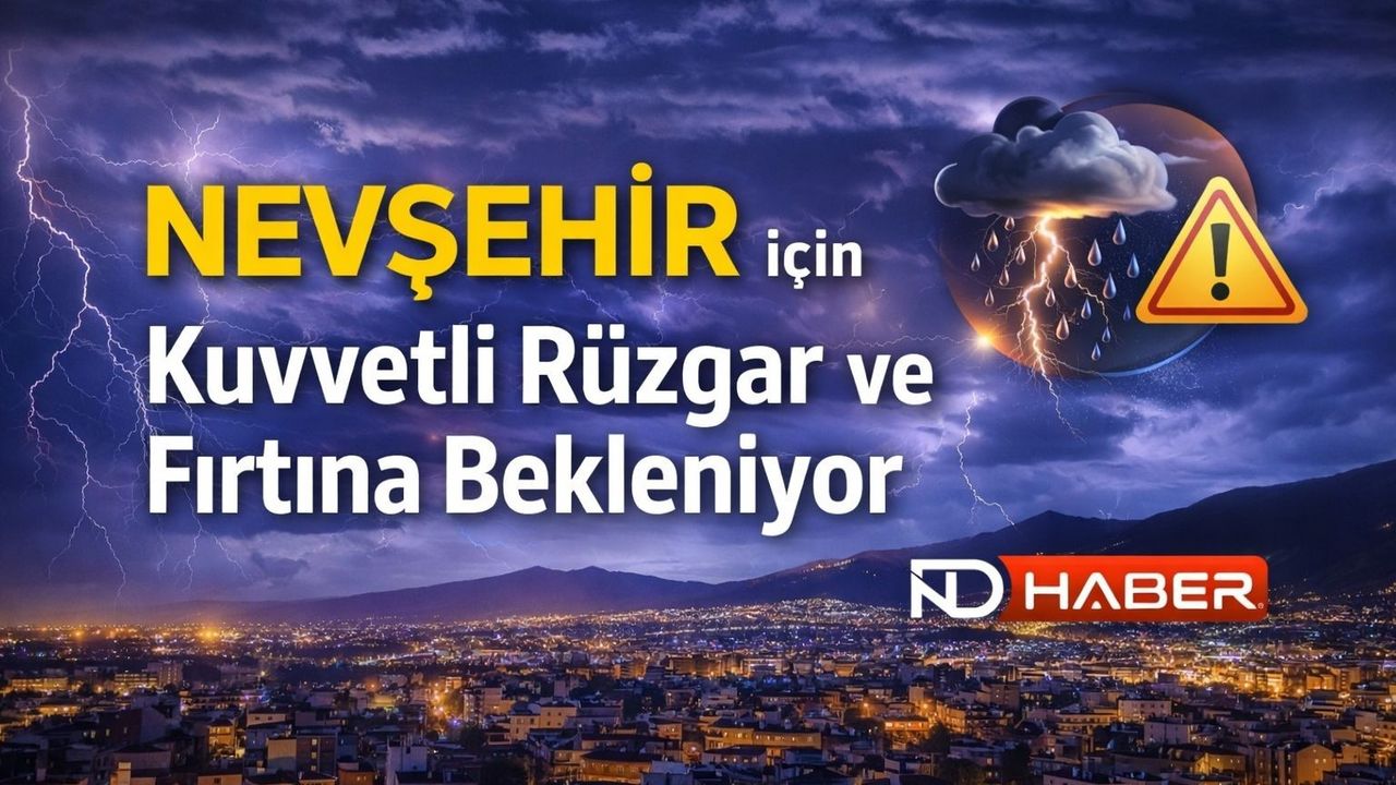 Yapılan son değerlendirmelere göre; rüzgârın Perşembe (02.04.2026) sabah saatlerinden itibaren Nevşehir ve çevrelerinde güneyli yönlerden ‘kuvvetli rüzgâr, fırtına ve yer yer kuvvetli fırtına’ (40-60 km/saat yüksek kesimlerde zaman zaman 60-80 km/saat) şeklinde esmesi beklendiğinden yaşanabilecek olumsuzluklara karşı dikkatli ve tedbirli olunmalıdır.