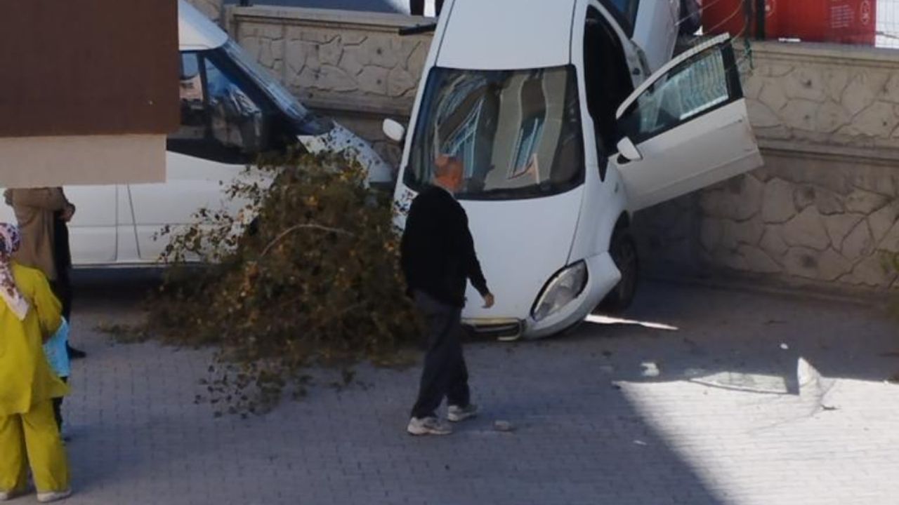 Nevşehir Cevher Dudayev Mahallesi’nde, Karanfil Apartmanı önünde bir otomobil istinat duvarından aşağı düştü.