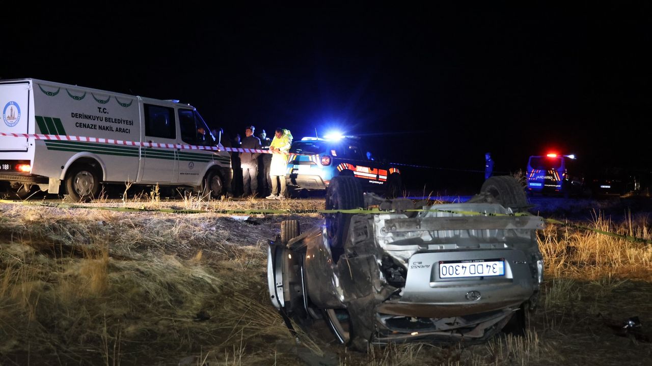Nevşehir’in Derinkuyu ilçesinde kontrolden çıkan otomobilin tarlaya uçtuğu kazada 2 kişi öldü, 1 kişi yaralandı.