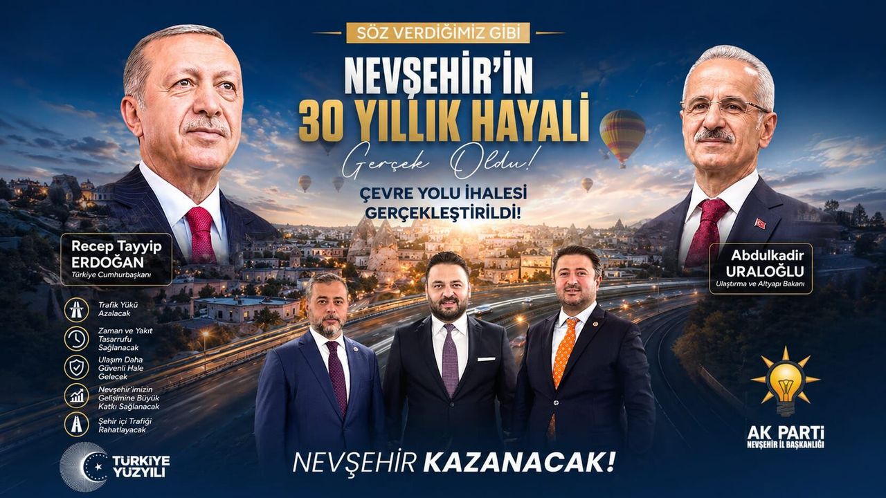 AK Parti Nevşehir Milletvekili Emre Çalışkan, Nevşehir Çevre Yolu Projesi’nin ihalesinin 30 Nisan 2026 tarihinde gerçekleştirildiğini açıkladı.