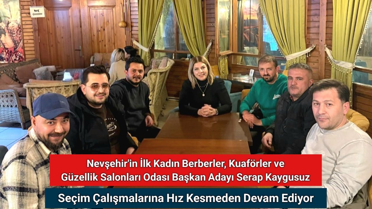 Nevşehir Berberler, Kuaförler ve Güzellik Salonları Odası Başkanlığı için adaylığını açıklayan Serap Kuaför Salonu işletmecisi Serap Kaygusuz, seçim çalışmalarını aralıksız sürdürüyor.