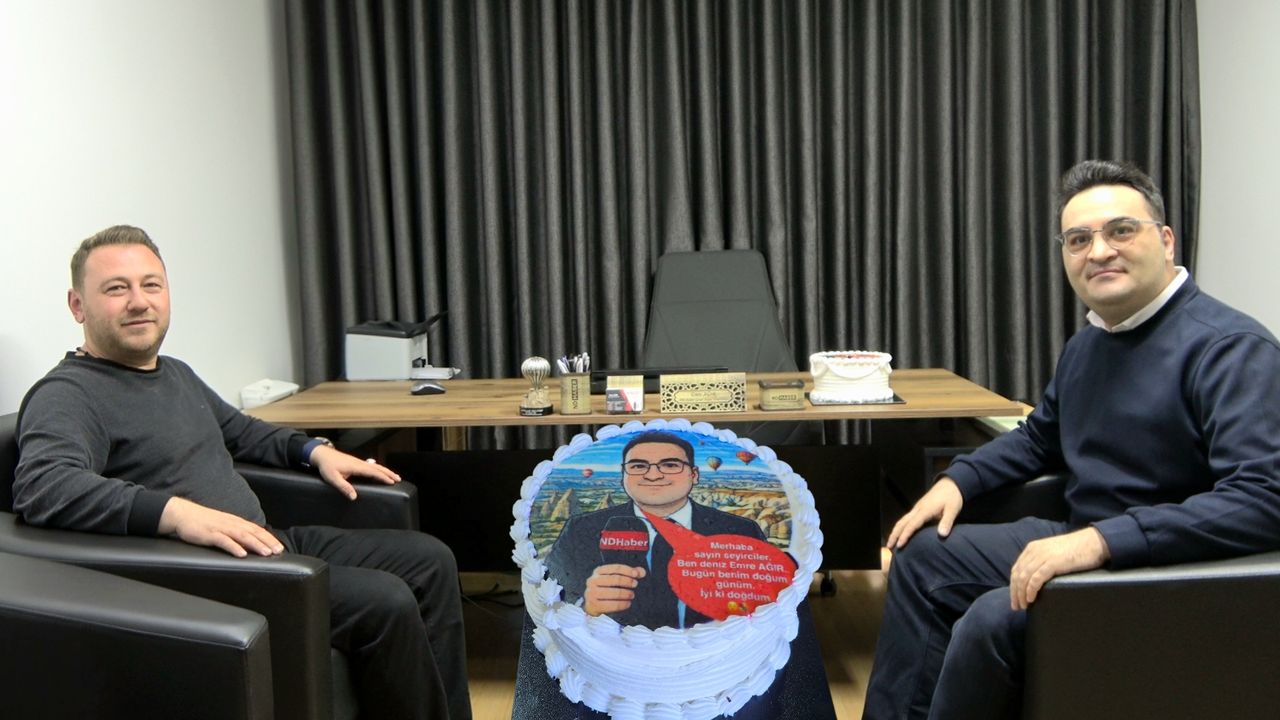 Nevşehirli turizmci iş insanı Murat Çopur, ND Haber’e gerçekleştirdiği ziyaret kapsamında hem nezaket hem de doğum günü dolayısıyla ND Haber Genel Yayın Yönetmeni Emre Ağır ile bir araya geldi. Gerçekleşen ziyarette, Emre Ağır nazik düşüncesi ve anlamlı buluşma için Murat Çopur’a teşekkür etti.