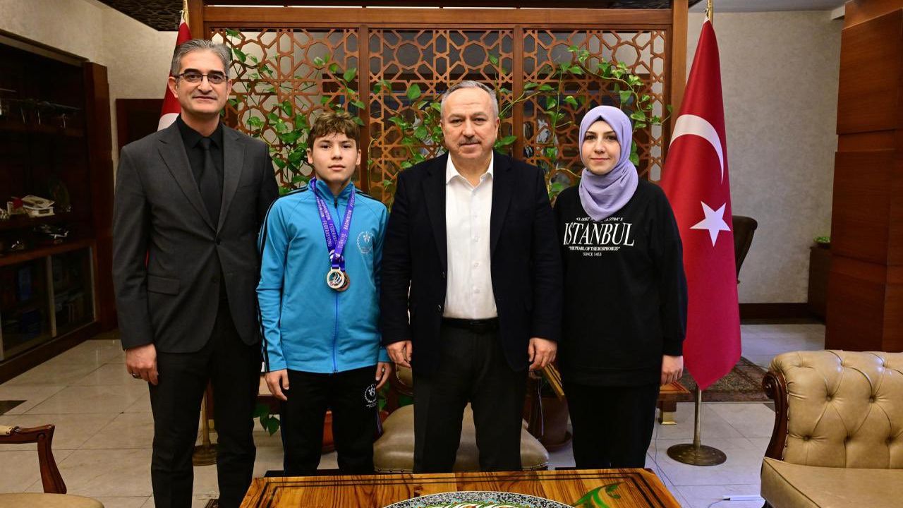 Vali Ali Fidan, sporcuyu ve antrenörünü tebrik ederek başarılarının devamını diledi.