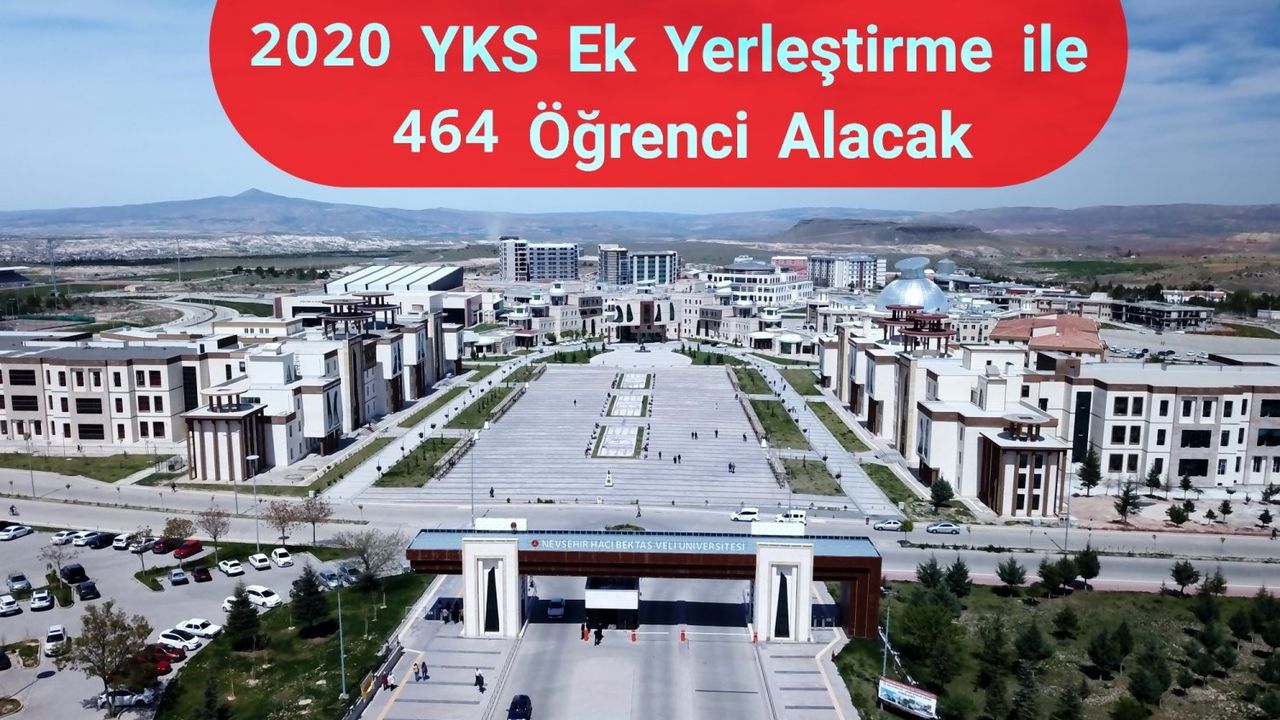 Nevşehir Hacı Bektaş Veli Üniversitesi (NEVÜ), 2020 Yükseköğretim Kurumları (YKS) sonuçlarına göre 2020 – 2021 eğitim – öğretim yılı için ek yerleştirme ile 464 öğrenci alacak.