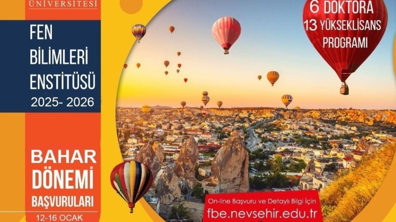 NEVÜ Fen Bilimleri Enstitüsü 2025-2026 Eğitim - Öğretim Yılı Bahar Yarıyılı için belirtilen tezli yüksek lisans ve doktora programları için öğrenciler başvurularını https://ubys.nevsehir.edu.tr/AIS/ApplicationForms/Home/Index?apptype adresi üzerinden çevrim içi olarak 12-16 Ocak 2026 tarihlerinde yapacaklar.