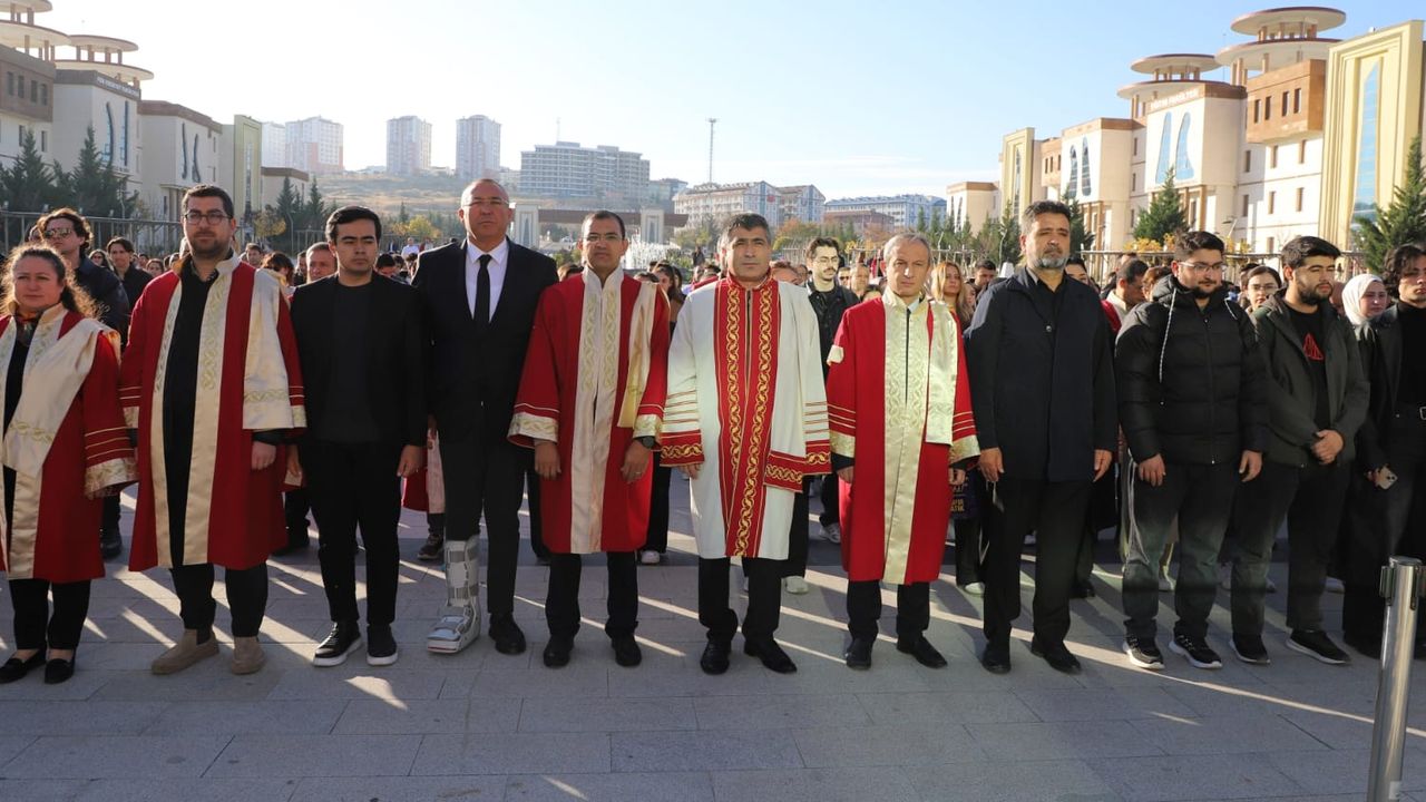 Rektör Prof. Dr. Semih Aktekin’in Atatürk heykeli önüne üniversitenin çelengini bırakmasıyla başlayan tören Gazi Mustafa Kemal Atatürk’ün ebediyete intikali olan saat 09.05’te, Atatürk, silah arkadaşları ve tüm aziz şehitler için iki dakikalık saygı duruşunun ardından İstiklal Marşı’nın okunmasıyla sona erdi.
