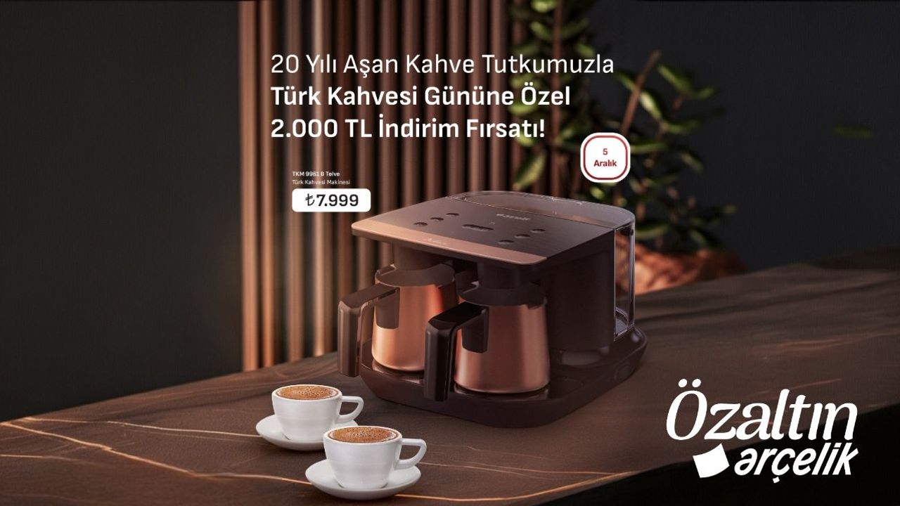 Özaltın Arçelik, Türk Kahvesi Günü’ne özel olarak TKM 9961 B Telve Türk kahvesi makinesinde 2.000 TL indirim fırsatı sunuyor. 20 yılı aşan kahve deneyimini yansıtan model, 5 Aralık’a özel kampanya kapsamında 7.999 TL’den satışa çıkarıldı.