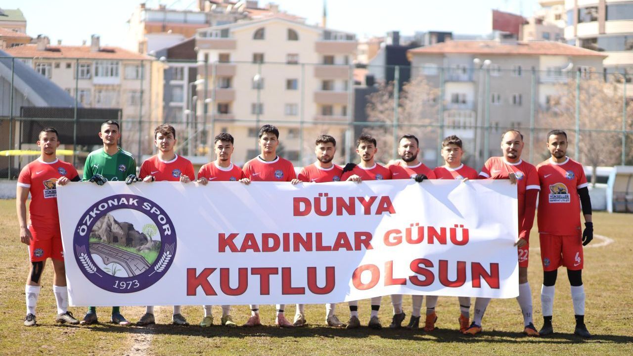 Özkonak Spor futbolcuları, 8 Mart Dünya Kadınlar Günü dolayısıyla sahaya anlamlı bir pankartla çıktı.