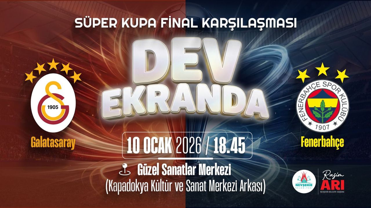 Nevşehir Belediye Başkanı Rasim Arı, Süper Kupa Final müsabakası coşkusunu hep birlikte yaşamak isteyen tüm Nevşehirlileri, 10 Ocak 2026 Cumartesi günü saat 20.30’da Güzel Sanatlar Merkezi’ne davet etti.