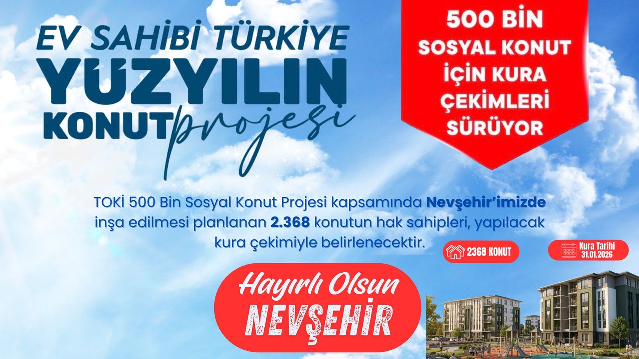 AK Parti Nevşehir Milletvekili Emre Çalışkan, TOKİ 500 Bin Sosyal Konut Projesi kapsamında Nevşehir’de inşa edilecek 2.368 konutun hak sahiplerinin 31 Ocak 2026 tarihinde yapılacak kura çekimiyle belirleneceğini açıkladı.
