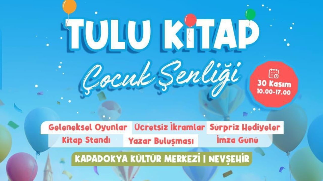 Nevşehir'de çocukların okuma kültürünü desteklemek ve ailelere keyifli bir hafta sonu alternatifi sunmak amacıyla düzenlenen Tulu Kitap Çocuk Şenliği, 30 Kasım’da Kapadokya Kültür Merkezi’nde kitapseverlerle buluşacak. Saat 10.00–17.00 arasında gerçekleştirilecek etkinlik, ücretsiz ikramlardan yazar buluşmalarına kadar geniş bir içerik yelpazesi sunacak.