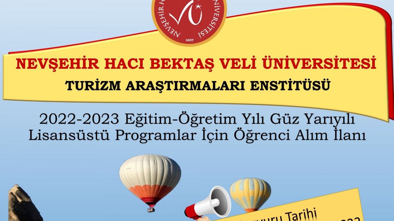 NEVÜ Turizm Araştırmaları Enstitüsü 2022- 2023 Eğitim-Öğretim Öğretim Yılı Güz Yarıyılı için; Gastronomi ve Mutfak Sanatları Anabilim Dalı Tezli Yüksek Lisans Programına 17, Doktora Programına 19 olmak üzere toplam 36 lisans üstü öğrenci, Turizm Rehberliği Anabilim Dalı Tezli Yüksek Lisans Programına 17, Doktora Programına 16 olmak üzere toplam 33 lisans üstü öğrenci, Turizm İşletmeciliği Anabilim Dalı Tezli Yüksek Lisans Programına 17, Doktora Programına 17 olmak üzere toplam 34 lisans üstü öğrenci, İnanç Turizmi Anabilim Dalı (Disiplinlerarası) Tezli Yüksek Lisans Programına ise 12 lisansüstü öğrenci alacak.