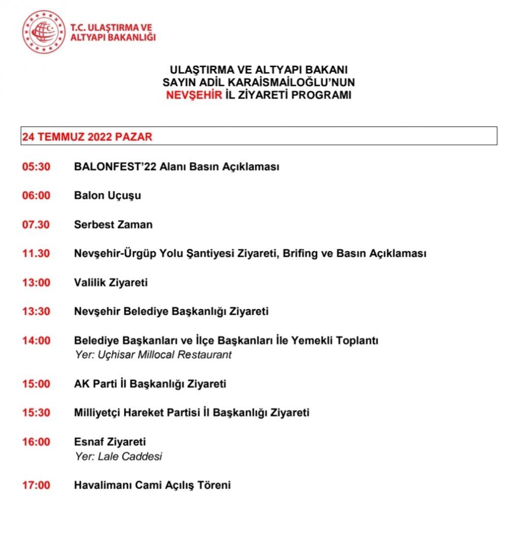 Ulaştırma ve Altyapı Bakanı Adil Karaismailoğlu, Nevşehir'e geliyor. Bakan Karaismailoğlu'nun Nevşehir ziyareti'nin detayları belli oldu.