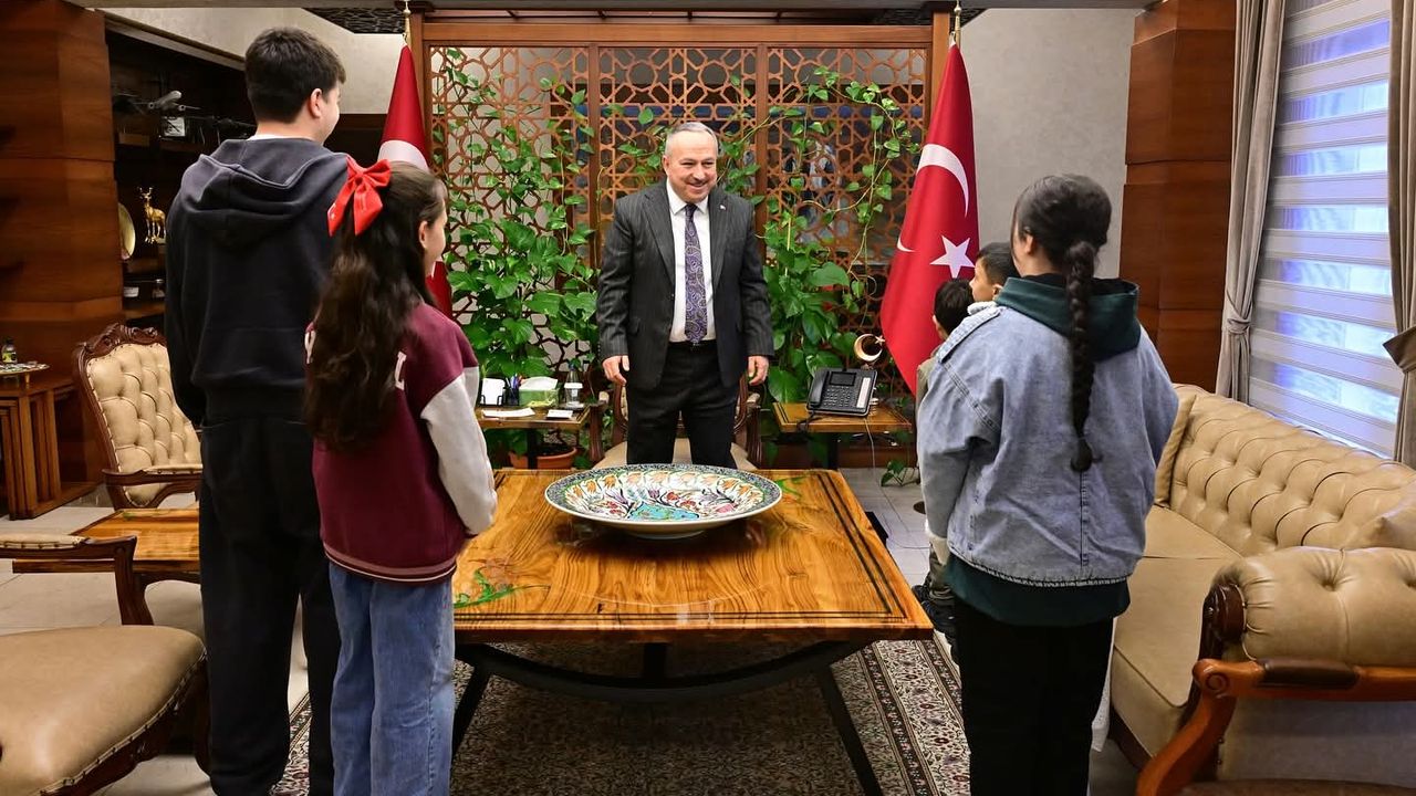 Gerçekleşen kabulde çocuklarla yakından ilgilenen Vali Ali Fidan, sıcak ve samimi bir sohbet gerçekleştirerek geleceğin teminatı olan çocukların ve gençlerin her zaman yanında olacaklarını ifade etti.
