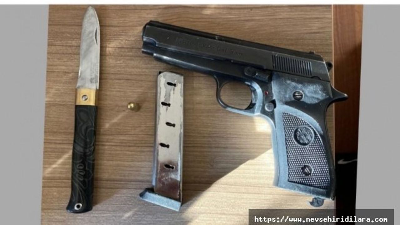 Hacı Rüştü Mahallesi Göncü sokak üzerinde durumundan şüphelenilen park halinde 51 plakalı araç içerisindeki 2 şahıs araçtan inerek kaçmaya başlaması üzerine yapılan kovalamacada şahıslar yakalanmış, Ş.B. isimli şahsın yapılan kontrolünde 1 adet silah ve kesici alet ele geçirilmiş Nöbetçi Cumhuriyet Savcısının talimatları doğrultusunda şahıs hakkında;